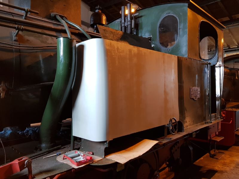 Preparations for the next season are in full swing. Firsta the vehicles: Emma's new coal box has been primed and we're now waiting for the air temperature to rise to a level that allows the green final coat of paint. She has to look pretty again by the first event.