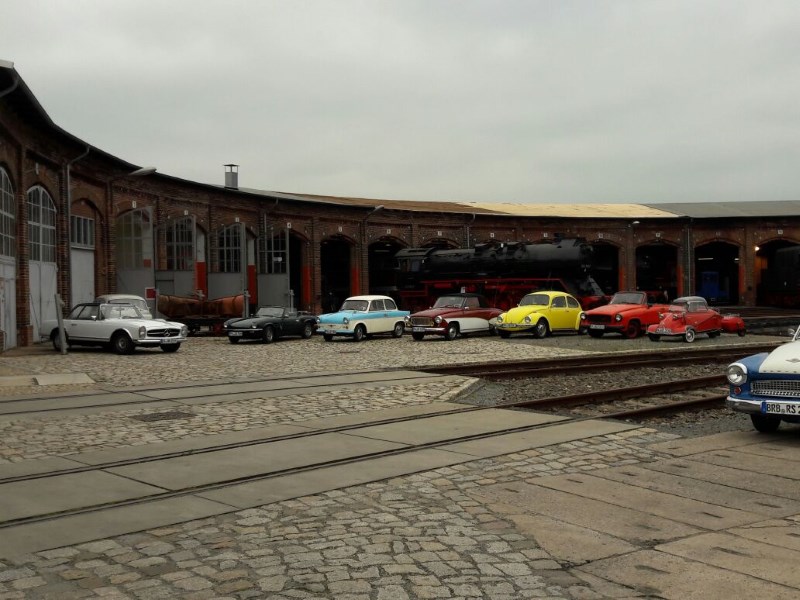 The old-timer friends from Potsdam took advantage of the beautiful autumn weather to take a trip to the Prignitz. One stop of the trip was at the Historischer Lokschuppen Wittenberge, where people and machines took a break. While the participants took a guided tour through the collection, the vintage cars sunbathed on the apron.