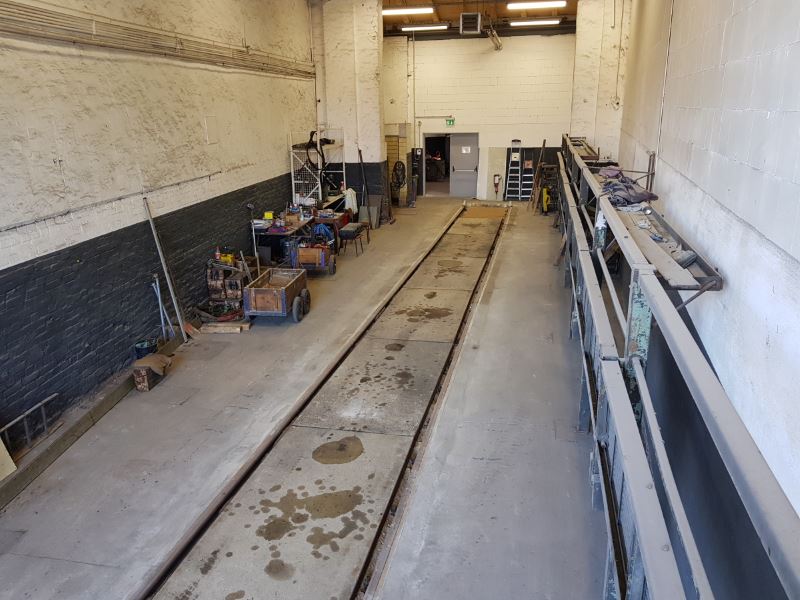 On Saturday, 18.5.2019, the workshop track in locoshed road 1 was completed. As part of the work on the track, the foundations were stabilised, new rails laid and the concrete floor adjusted to the rail height. Finally, new slabs were laid between the rails and the slabs in front of the engine shed, which served as temporary access, were removed.