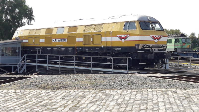 During the night of September 18 to 19, 2020, a new exhibit reached the museum. It is the largest diesel locomotive built in Germany since the war. It was manufactured by Henschel of Kassel and put into operation by the German Federal Railways in 1962. Originally with an installed power of 3,200 hp, ot was uprated to 3,800 hp, and worked heavy trains initially from Hamm in Westphalia and later on over the Bavarian Allg