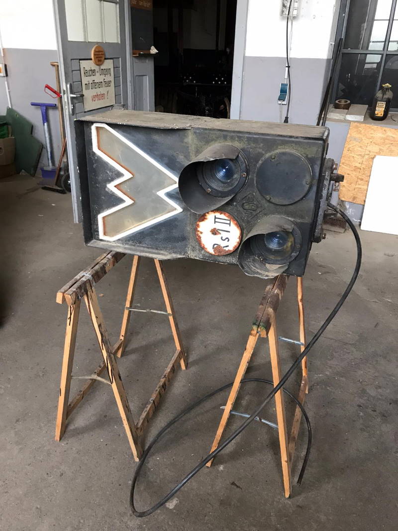 In the meantime, our electricians have also taken care of the new shunting signal, which will soon be put into operation in our track field. Before that, however, the cables, the lamps and the control system have to be checked. In addition, the "W" has to be given a transparent orange colour again. By the way, the W means "wait". Only when it lights up, a shunting train is allowed to pass the signal. The signal will be operated by our signal box Wm.