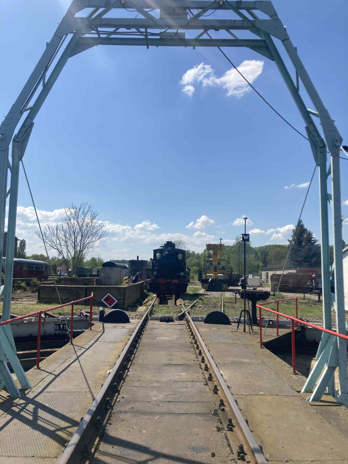Der Bahnhof Luckau und die angrenzenden Strecken werden derzeit von DBV Förderverein Niederlausitzer Eisenbahn e.V. betrieben. Dieser Verein veranstaltet u.a. an diesem Wochenende ein Bahnhofsfest in Luckau, aus dessen Anlass unsere Dampflok Emma für Führerstandsmitfahrten eingesetzt wird.
