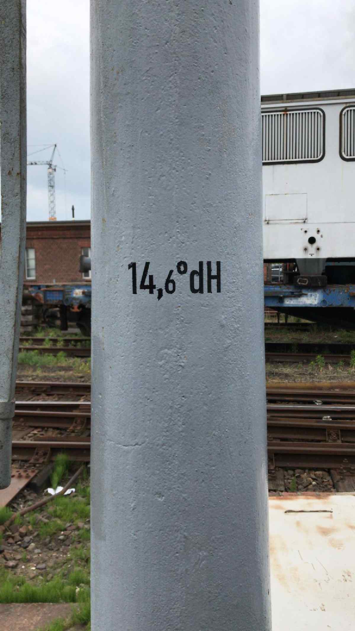So sind wir unabhängig von der öffentlichen Wasserversorgung. Für die Chemiker: Unser Wasser hat eine Härte (Kalkgehalt) von 14,6° dH. Was geschah an diesem Wochenende sonst noch? Nach Abschluss der Saison müssen unsere betriebsfähigen Fahrzeuge in den Winterschlaf versetzt werden. Am Samstag wurde deshalb der Kessel der 50 3570 ausgewaschen. Das bedeutet, dass die Rückstände, die beim Verdampfen des Wassers im Kessel zurückgeblieben sind, mit einem scharfen Wasserstrahl herausgewaschen werden. Bei den Ablagerungen handelt es sich hauptsächlich um Kalk, wie Sie sie im Kleinen von Ihrer Kaffeemaschine oder der Waschmaschine kennen. Damit sich der Kalk nicht fest auf den Oberflächen ablagert, benutzen Sie zuhause vielleicht Kalklösemittel in Form von Tabletten. Wir benutzen dafür Soda, das dem Wasser im Tender in Pulverform zugegeben wird und sich dort auflöst. Vor dort aus gelangt es beim Betrieb der Lok in den Kessel und bindet sich dort mit dem Kalk aus dem Wasser zu Schlamm, der sich am Kesselboden absetzt. Da Soda ziemlich schäumt und das beim Betrieb der Lok unerwünscht ist, wird dem Wasser außerdem noch eine sogenannte Schaumbremse zugesetzt. Wieviel Soda zugegeben muss, erkennen die Lokpersonale beim Blick auf die Wasserkräne. Dort sollte angeschrieben stehen, wie hart, also wie kalkhaltig das Wasser ist. Entsprechende Tabellen geben Auskunft darüber, wieviel Soda bei welcher Wasserhärte zugesetzt werden muss.