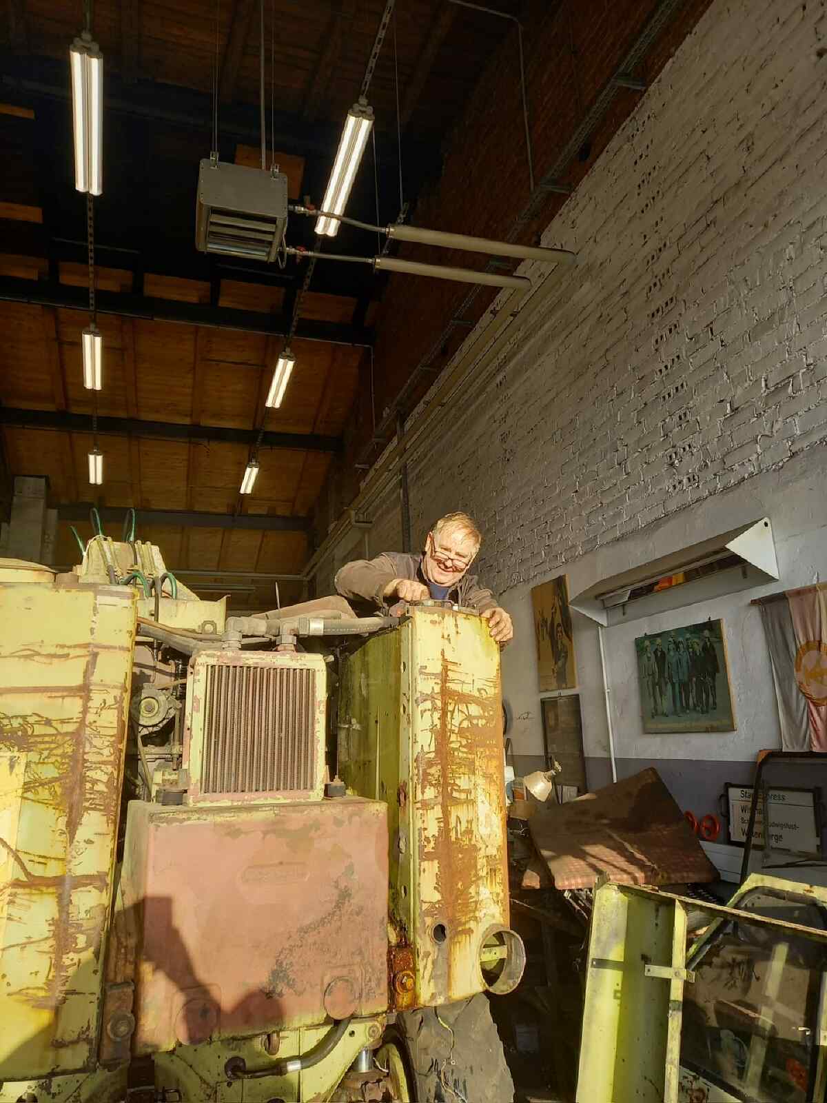 ... the activities shifted to the engine shed for the time being. Here there is progress to report on our excavator T174. After intensive reconditioning of the drive and the auxiliary units as well as the replacement of all hydraulic lines, the assembly is now so far advanced that the operating fluids can be filled. The first test run is imminent.