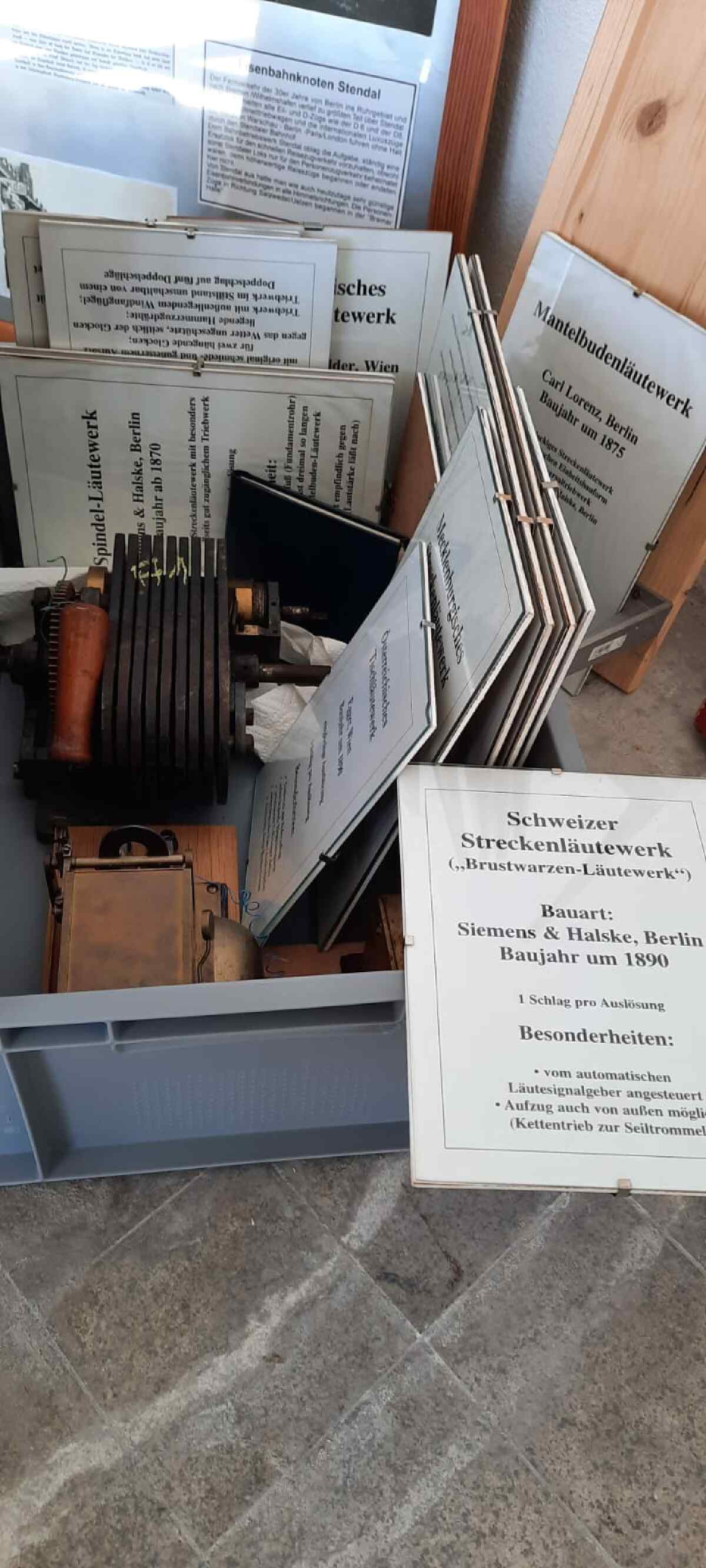 On Sunday, the nationwide Open Monument Day took place. We also took part in this event and were able to tell quite a few visitors about our activities to preserve our monument. Today we can also report on another small sensation. Unfortunately, the well-known Stendal specialist book author and railway enthusiast Wolfgang List passed away some time ago. However, we were able to come to an agreement with the family that our museum will take over and exhibit the extensive collection of bell mechanisms. These are various devices, some of them the size of telephone booths, which were used to signal incoming and outgoing trains by morse signals before the digitalisation of the railway. Wolfgang List had saved such equipment from being scrapped in many parts of Germany and restored it to working order in his private collection. Now the parts will be given their rightful place in Wittenberge. We would like to thank the relatives once again for their willingness to hand over the collection to us. A few days ago, we started to set up the large exhibits in our outdoor area.