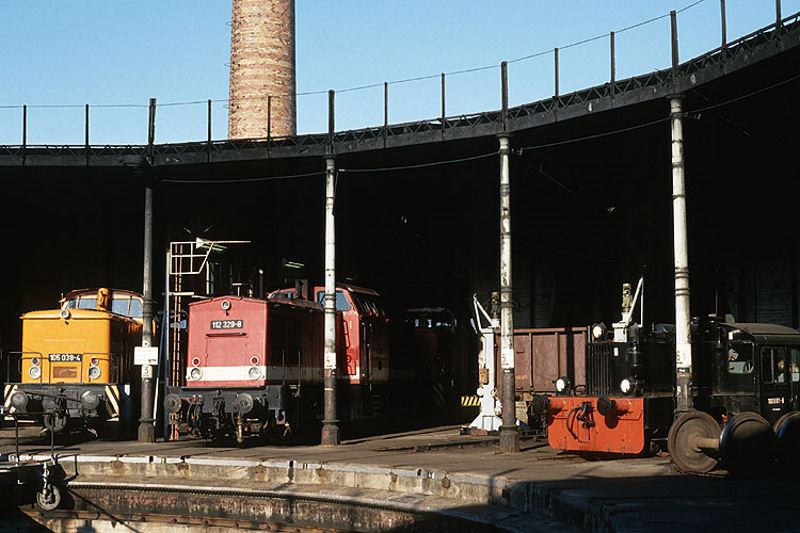 Der alte Lokschuppen war als sogenannte Rotunde gebaut, also ein geschlossener Ringschuppen mit überdachter Drehscheibe in der Mitte. Er wurde Mitte der 90er Jahre abgerissen, um Platz für die neuen Gleisanlagen zu schaffen.