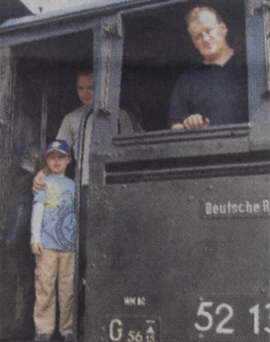 Jan Niklas nahm auf einer zur Draisine umgebauten Schwalbe Platz, Mama Doreen machte Fotos. |