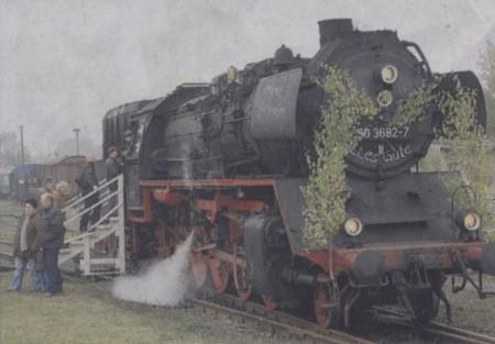 Im Sommer 1961 war es dann soweit : Aus der 50 255 wurde die 50 3682. Im Reichsbahnausbesserungswerk Stendal wurde sie modernisiert und umgezeichnet, bevor sie ihren Dienst in verschiedenen Bahnbetriebswerken wieder aufnahm. 1987 schied sie nach rund 1,4 Millionen zurückgelegten Kilometern aus dem Planbetrieb aus. Ab 1988 als Heizlok eingesetzt, erlosch 1990 das Feuer in ihrem Kessel. Nachdem ein Eisenbahnfreund sie 1993 von der Deutschen Reichsbahn erwarb, befindet sie sich seit 1994 betriebsfähig aufgearbeitet in den Händen der Dampflokfreunde Salzwedel. Im Sommer 2010 wird sie in den Ruhestand verabschiedet. Denn dann läuft die Betriebsgenehmigung für den Kessel ab, die Untersuchungsfrist fürs Fahrwerk 2011. Mit den begrenzten finanziellen Mitteln der rund 60 Vereinsmitglieder seien die notwendigen Arbeiten für eine Fortführung des Fahrbetriebes nicht zu realisieren, bedauert der Buchautor.